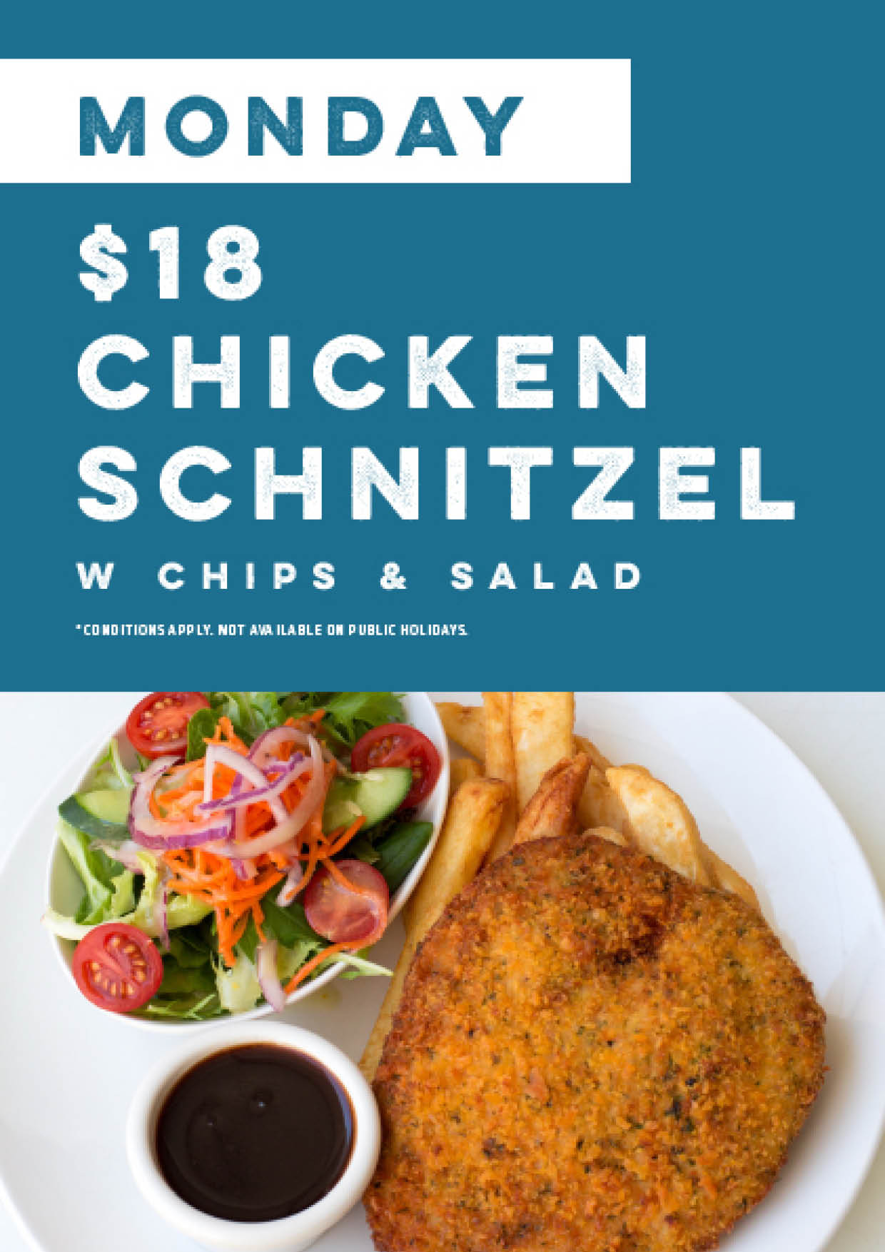 MONDAYS IN PORT DOUGLAS Tuck into a delicious $18 Snitty on Mondays – lunch or dinner! *not available public holidays