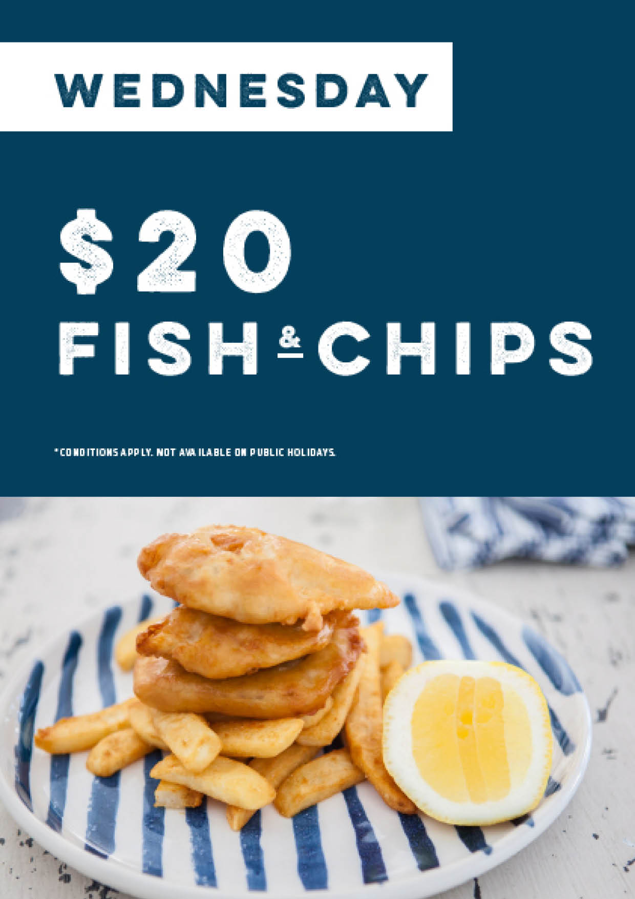 WEDNESDAYS IN PORT DOUGLAS Our famous fish and chips is on special for $20 every Wednesday at The Courty!! *not available public holidays